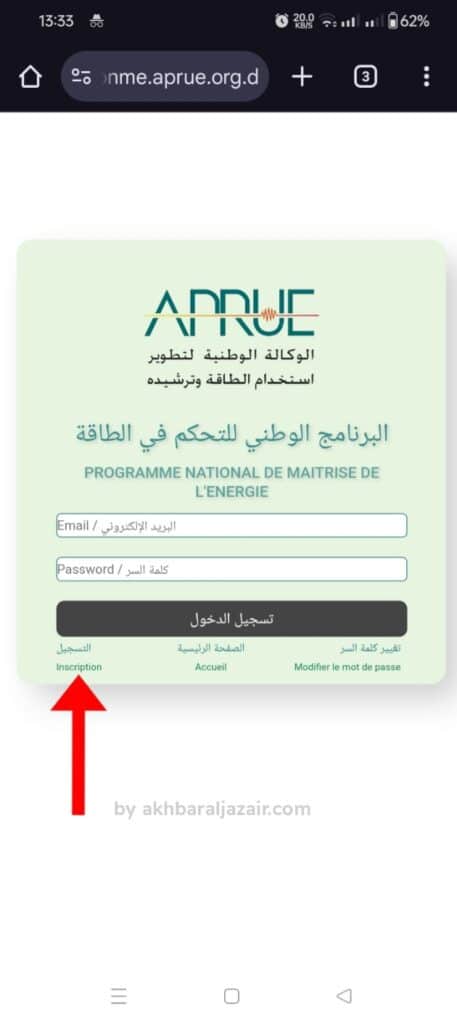 - الدخول إلى الموقع الرسمي لمنصة إعانة لاستبدال مكيفات الهواء القديمة: https://pnme.aprue.org.dz/.