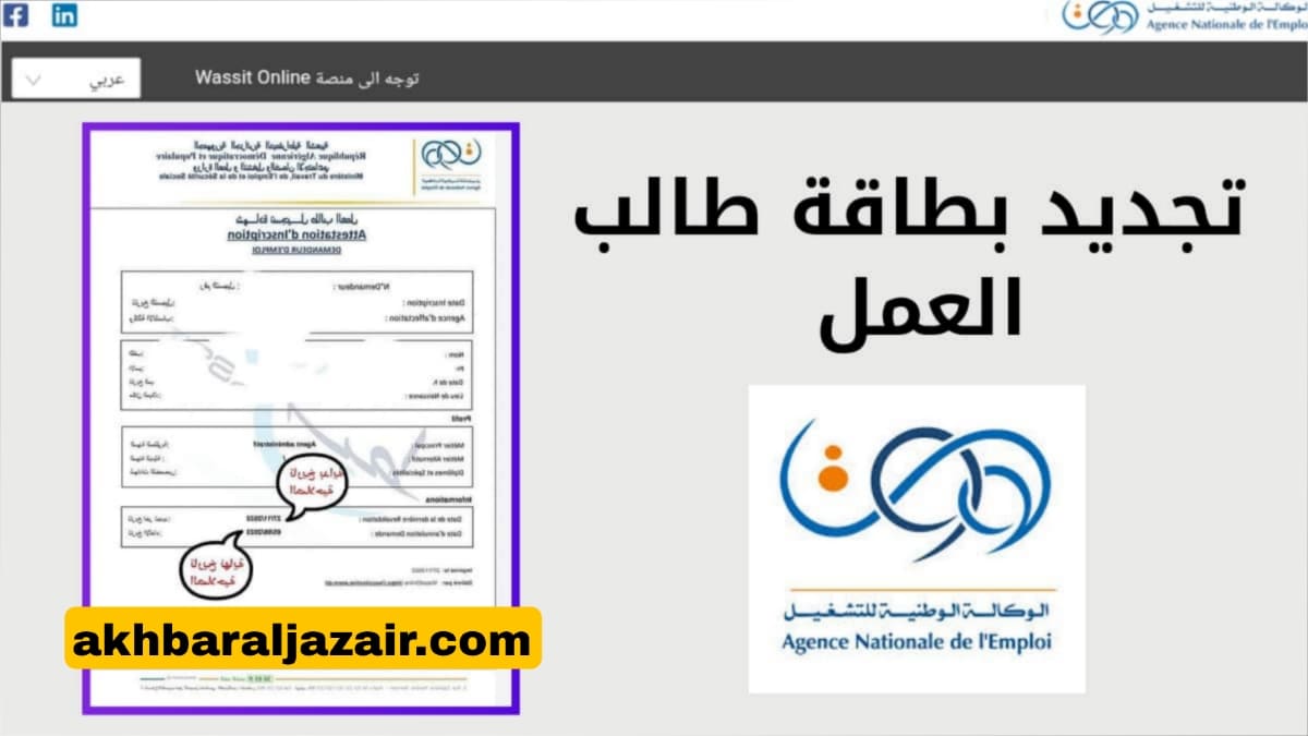 تجديد بطاقة طلب العمل عن طريق الإنترنت: wassitonline.anem.dz