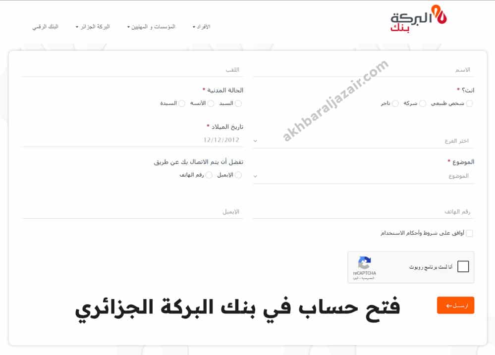 لضمان تقديم طلبك بنجاح، اتبع الخطوات التالية عند ملء استمارة فتح الحساب في بنك البركة الجزائري (Al Baraka Bank DZ):