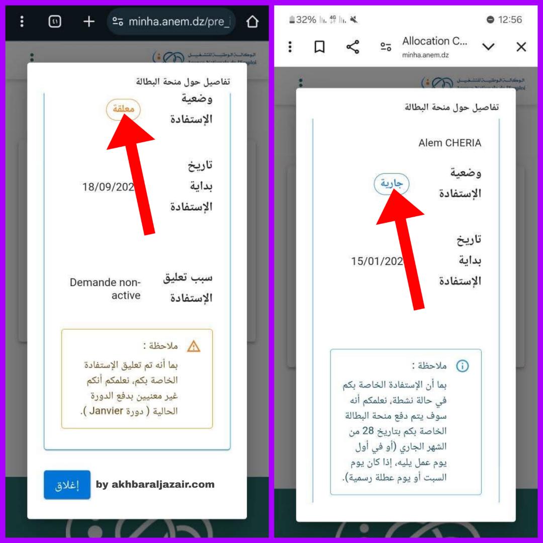 شروط معرفة وضعية منحة البطالة جارية او معلقة